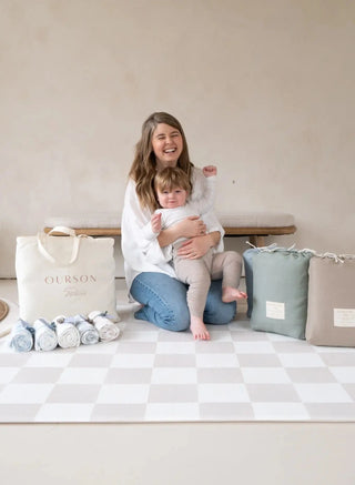 Ourson was founded in 2022 when my 6 month old started sitting up - he was wobbly, and kept hitting his head on our hardwood floors. I wanted a playmat that would be comfortable to sit on, and would cushion his falls. I also felt like my home was slowly being overtaken by baby products, and I wanted something that felt like my style and would fit in with my home decor.