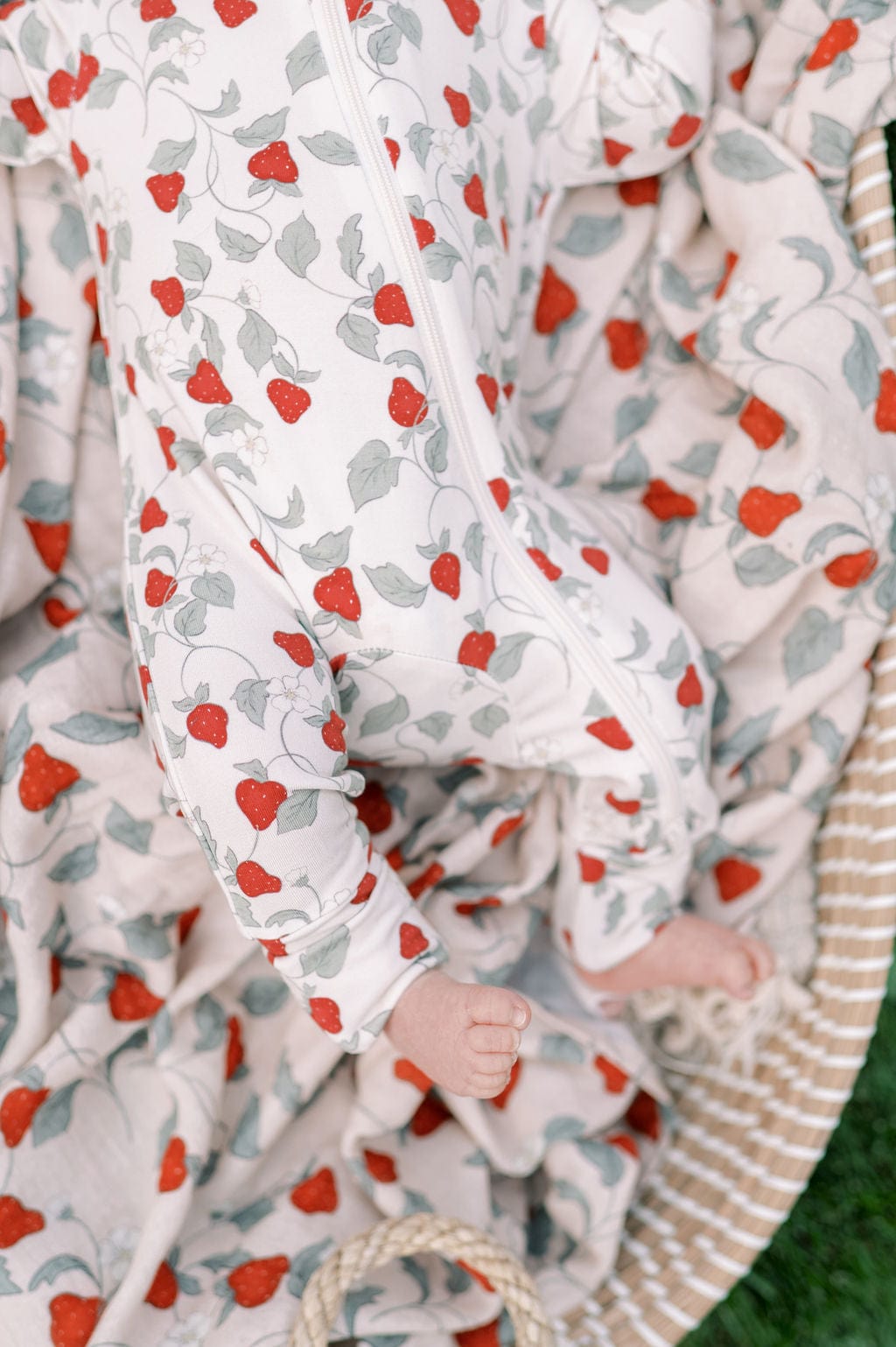 Organic Cotton Swaddle Blanket - Summer Strawberries